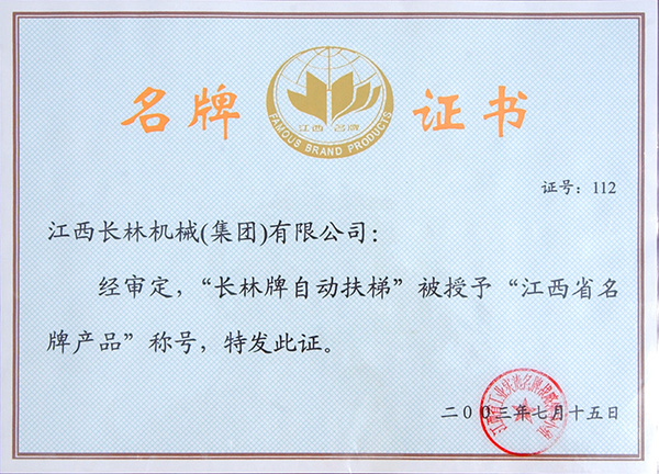 2003年省名牌產(chǎn)品證書