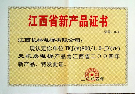 2004年無機(jī)房電梯新產(chǎn)品證書