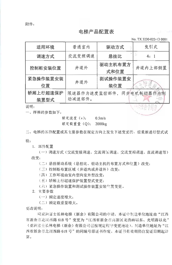 THJ(W)(G)2000無機房貨梯合格證