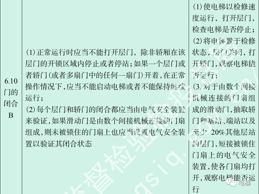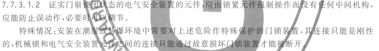 先來看檢規(guī)中有沒有關(guān)于“扒門停梯”的描述?答案是沒有直接描述。但既然“扒門停梯”和門有關(guān),我們就仔細(xì)研究下檢規(guī)第6項(xiàng)“轎門與層門”部分,可以發(fā)現(xiàn),唯一可能與“扒門停梯”最接近的描述是6.10(1)項(xiàng),但按照檢規(guī)描述,此時(shí)的門應(yīng)是處于打開狀態(tài)的,而“扒門”時(shí)是試圖把門打開卻未打開,所以該條設(shè)定與“扒門”不相符,不做參考。 所以綜上我們可以得出結(jié)論:所謂以“扒門停梯”來驗(yàn)證電梯層門合格與否是個(gè)偽命題,“扒門停梯”應(yīng)是電梯的一種安全保護(hù)動(dòng)作,它首先保護(hù)了扒門人的人身安全,其次保護(hù)了乘梯人和設(shè)備本身的安全,應(yīng)屬于電梯的正常動(dòng)作范疇。