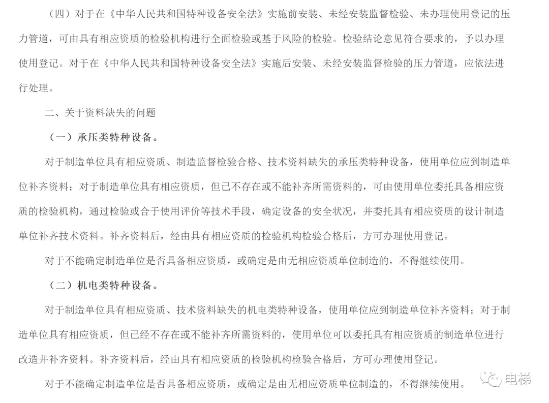 領(lǐng)導(dǎo)們好!我是河北省滄州市某區(qū)行政審批局人員。我區(qū)最近有一些老舊的電梯、起重機械來辦理改造變更,提供的材料是改造監(jiān)督檢驗報告和改造質(zhì)量證明資料,由于以前未辦理過使用登記證,所以無法提供舊使用登記證和使用登記表,這種情況下我們?nèi)绻芾砹耍团c《特種設(shè)備使用管理規(guī)則》上要求的關(guān)于改造變更的材料不符,如果不受理,企業(yè)將無法正常使用、檢驗。請問我們該如何處理?