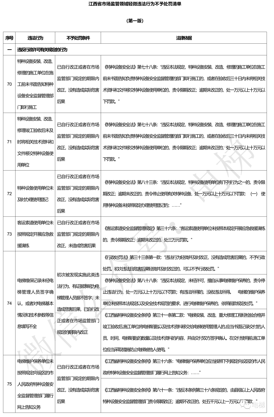 《江西省特種設(shè)備安全條例》第三十六條:“電梯維護保養(yǎng)單位應(yīng)當(dāng)按照下列規(guī)定向設(shè)區(qū)的市人民政府特種設(shè)備安全監(jiān)督管理部門履行網(wǎng)上告知義務(wù):……”