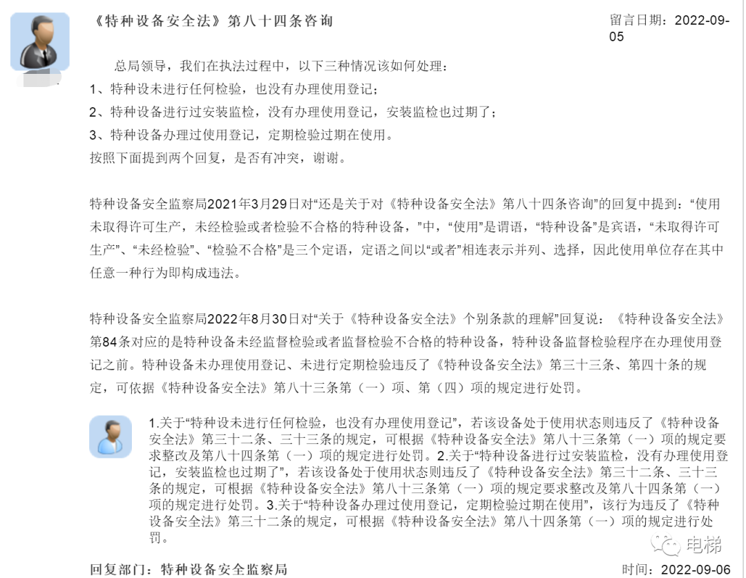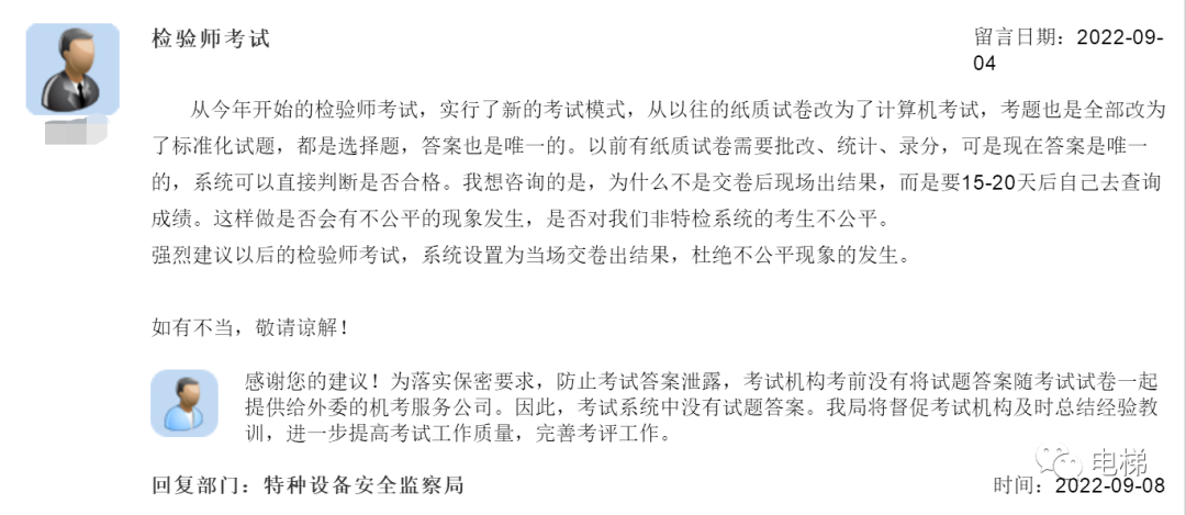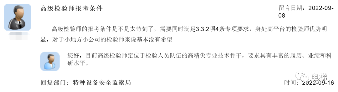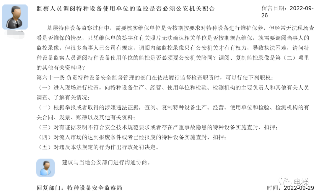 總局回復(fù):高級(jí)檢驗(yàn)師報(bào)考條件;關(guān)于2022年電梯檢驗(yàn)師考試;監(jiān)察人員是否有權(quán)利調(diào)閱物業(yè)監(jiān)控;(五十九)