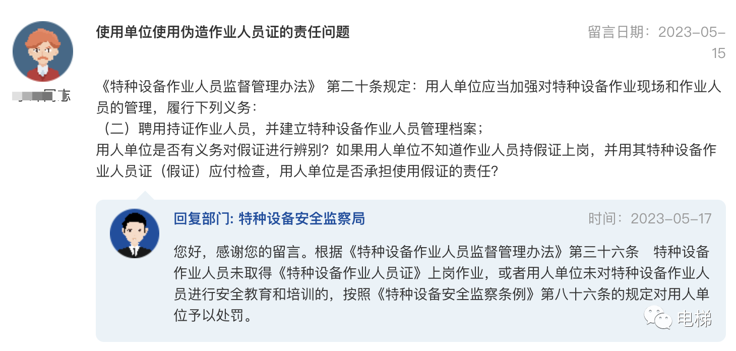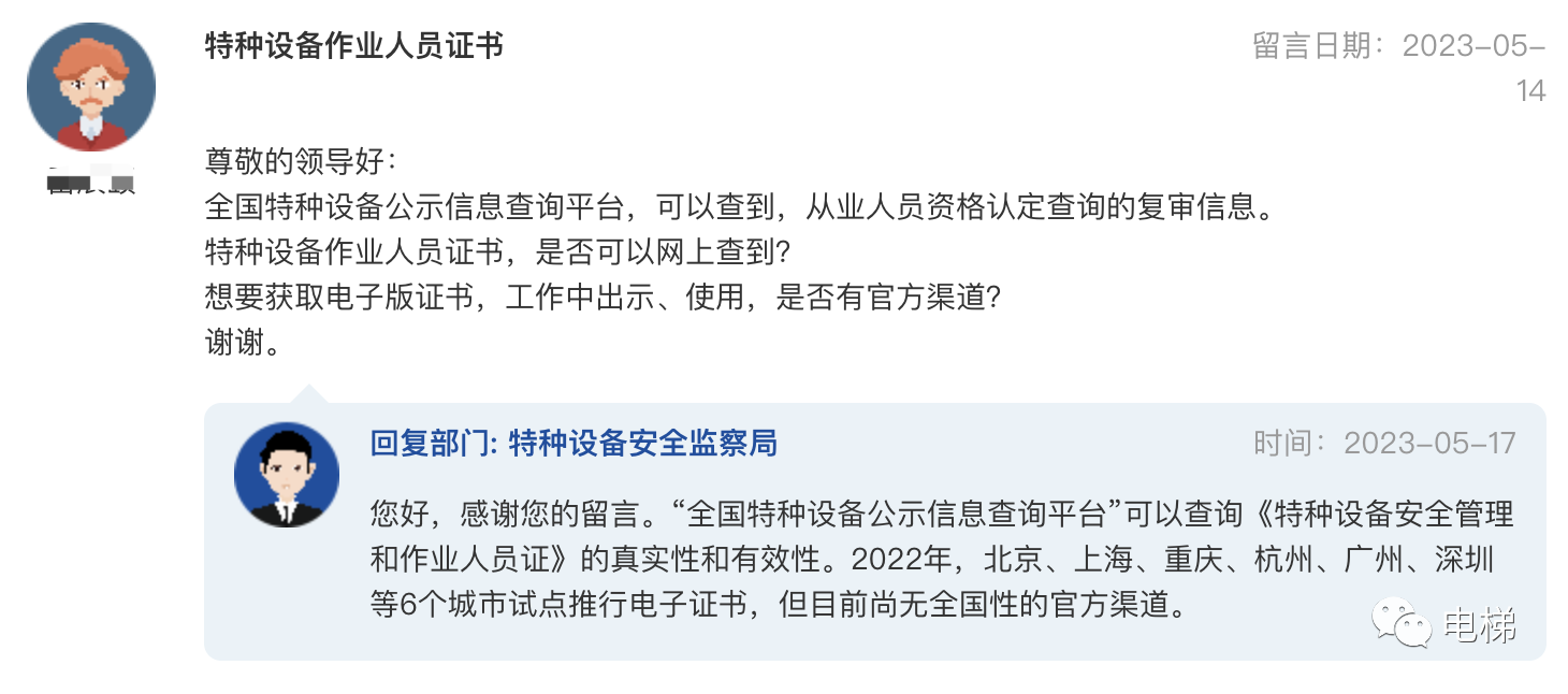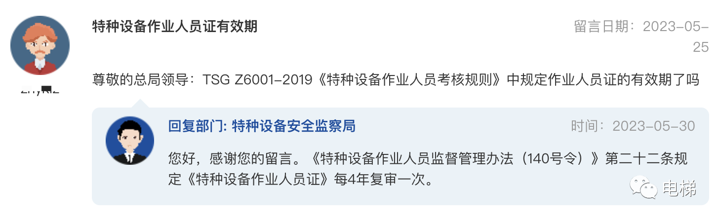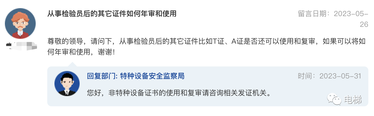 ps:這個(gè)T證和A證是電梯維保的操作證和電梯安全員證,總局回復(fù)的時(shí)候英國(guó)忽略了這個(gè)簡(jiǎn)寫。