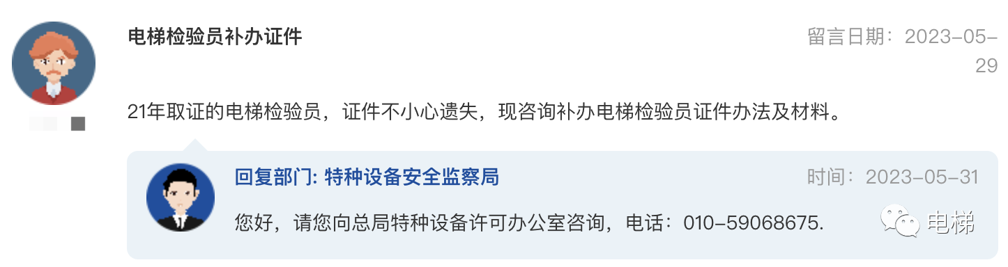 問(wèn):電梯檢驗(yàn)員補(bǔ)辦證件