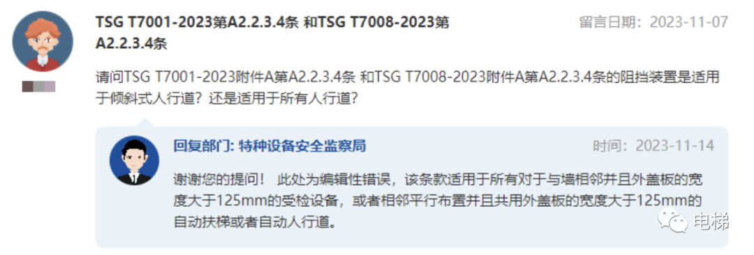 總局回復(fù):電梯檢規(guī)TSG T7001-2023有兩處錯誤?。撸?/h2>
