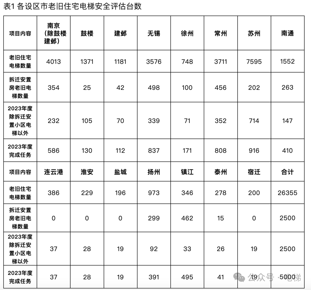 我們這里就是列舉了深圳這個(gè)例子,其實(shí)很多省份最近幾年都在推動(dòng)電梯安全評(píng)估。再比如江蘇,去年發(fā)布的電梯安全評(píng)估通知中,全省的老舊電梯臺(tái)數(shù)都統(tǒng)計(jì)得清清楚楚。